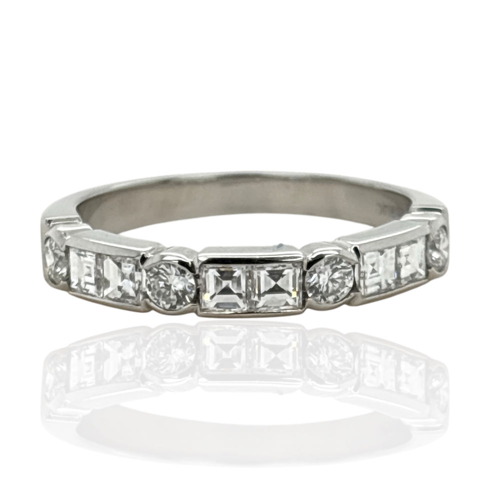 SQUARE & ROUND CUT HALF ETERNITY DIAMOND SET PLATINUM RING